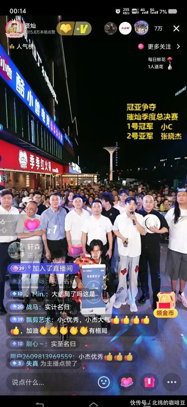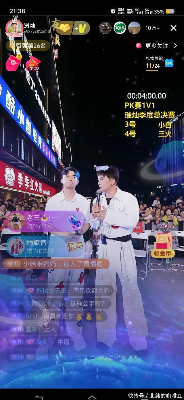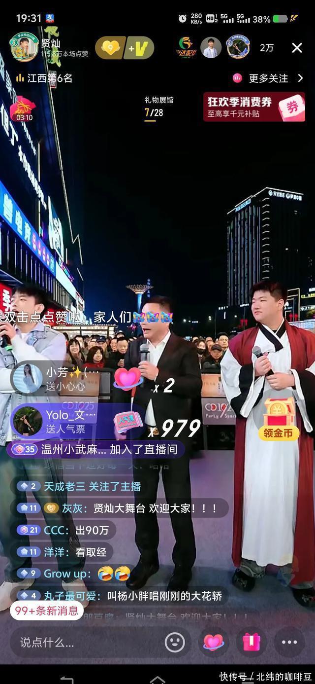 贤灿的经历比较坎坷,从小就缺母爱,都是奶奶带大的,所以对奶奶感情特别好,经常带奶奶去旅游,自己也离异,有个女儿,但是2025年贤灿表白成功南昌女网红冰晴冷,冰晴冷北京电影学院毕业,主要创作宣传江西文化旅游方面的视频! 贤灿最开始2022年是在南昌市街头搞笑幽默直播,主要在街头邀请一些有才艺的群众参与互动,表演好的一般都有奖励,也办过一段时间的相亲节目,也是在街头随便拉一些年轻男女参与相亲互动! 到了2025年6月13号,正式办一个唱歌大舞台,名字就叫贤灿大舞台,邀请全国优秀选手来比赛,日赛奖金5000到2万不等,月赛冠军第一季两万,第二季三万!季赛冠军一辆价值16万的小汽车! 现如今是第二季的比赛了,马上将迎来年赛,已经确定年赛冠军将会拿到一百万,太诱惑人了! 贤灿每天大舞台开播时间每天晚上19:00开播,两分钟在线人数就能突破一万人,15分钟大概2万人,3万人有时候不太稳定,最高峰是在今年9月30号季赛总决赛冠军赛,那天在线人数首次突破10万加,这也是他直播的第一个高峰!