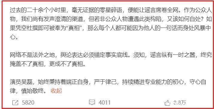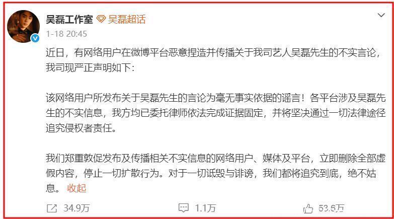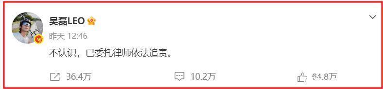 2个小时后,吴磊亲自发文:不认识,已委托律师依法追责。