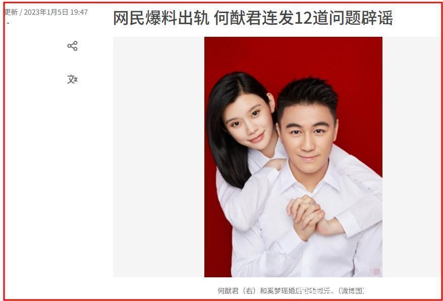 何猷君出轨,曾经有过相关爆料,但都被何猷君愤怒地辟谣了。