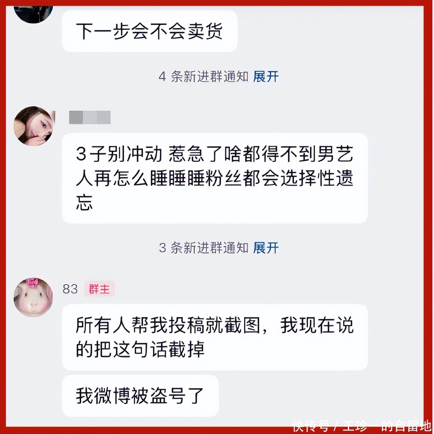 事情发展到这一步,白珊珊有些怂了,她在群里称自己账号被盗了。