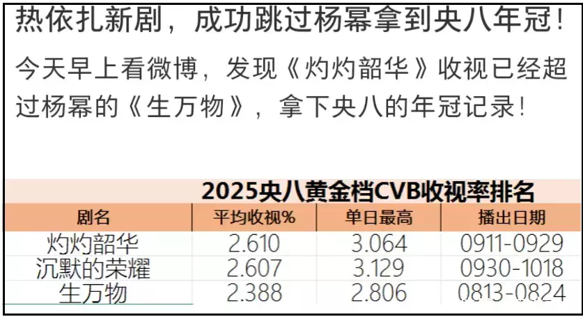 ——2025年,热依扎主演电视剧《灼灼韶华》在央视播出,收视刚刚好超过了杨幂主演电视剧《生万物》,杨幂见到热依扎就喊上了“华华”,可见她还是挺关注同龄女星事业发展的。