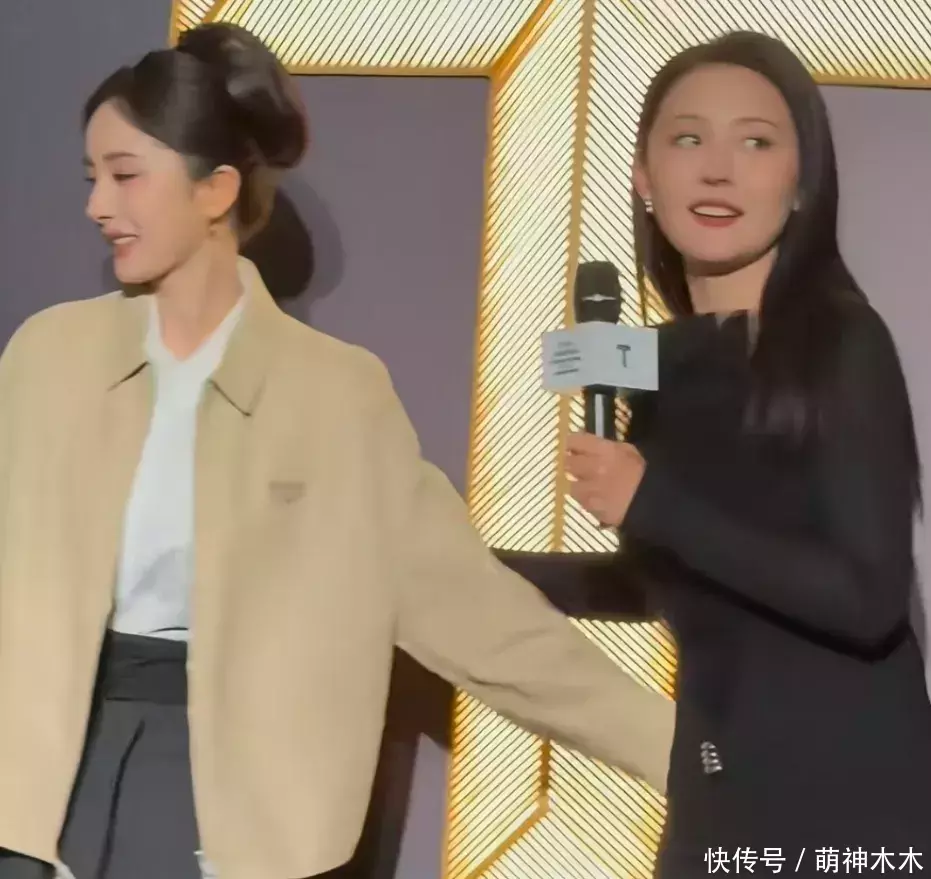 围观杨幂和热依扎同框互动全程,会发现其实是杨幂先主动,热依扎正在接受采访,杨幂上前拥抱了热依扎一下,还来了一句:“华华说得太好了,给华华鼓掌!”