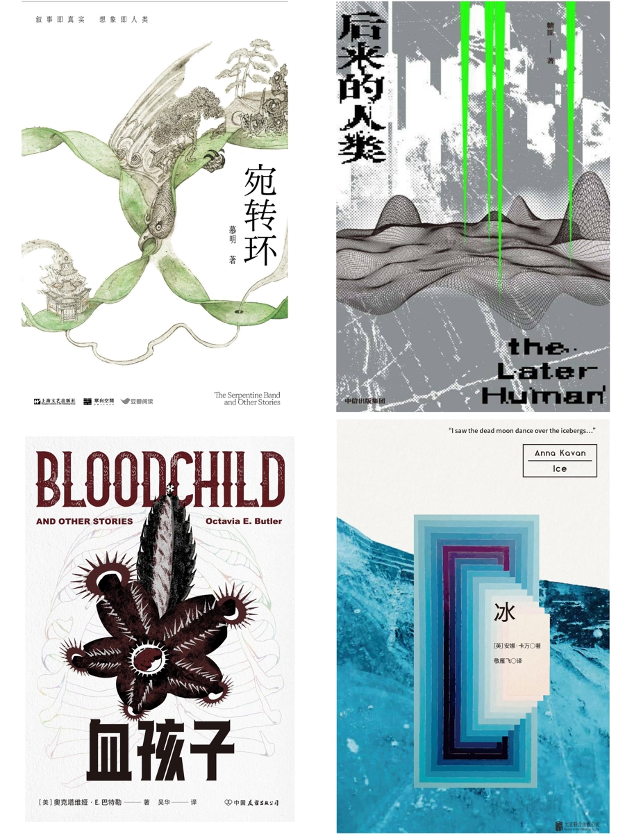 依次为《宛转环》《后来的人类》《血孩子》《冰》书影。