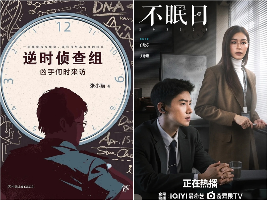 左为小说《逆时侦查组》书影,右为改编剧集《不眠日》海报。