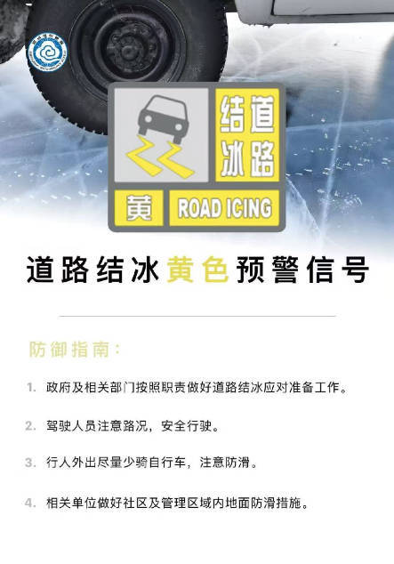 【大河财立方消息】1月22日10时23分,郑州市气象台继续发布道路结冰黄色预警信号: